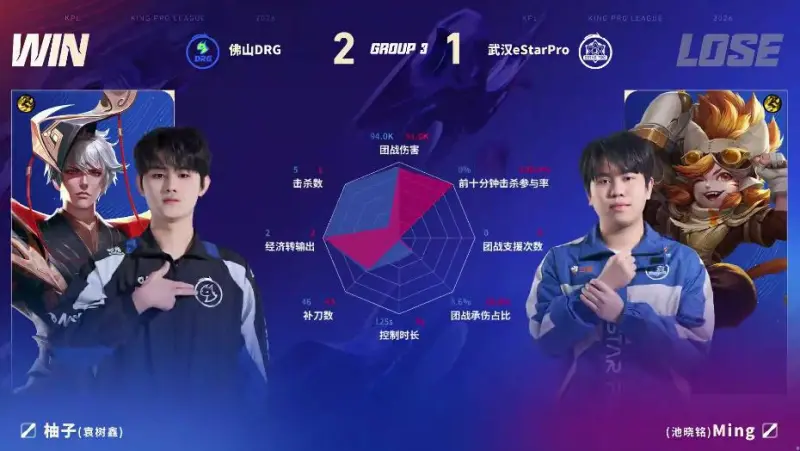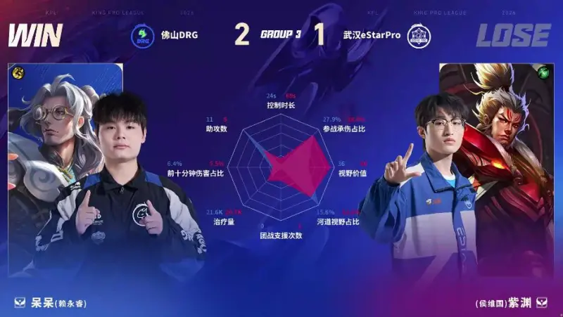 虎扑01月17日讯 DRG/ES第三局数据图:梦岚敖隐团战零死亡率