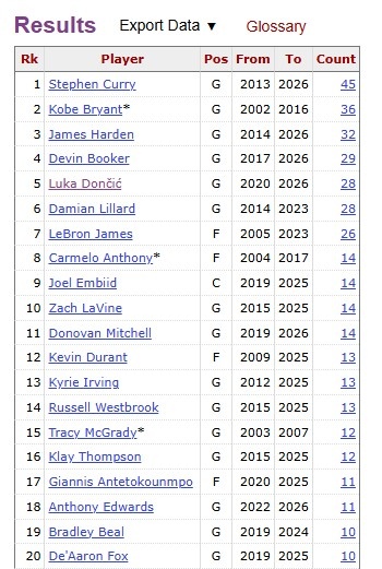 据统计,这是米切尔生涯至今第15次单节砍下20+,独享历史第7,库里以45次领跑。值得一提的是,目前榜单前7名中有三位13号秀(科比、布克、米切尔)。