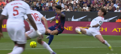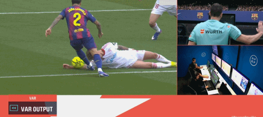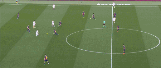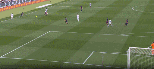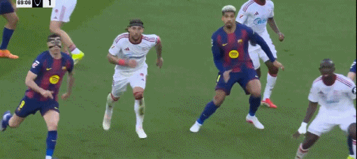 第38分钟,贝尔纳尔传球发生折射,奥尔莫破门,巴萨3-0塞维利亚